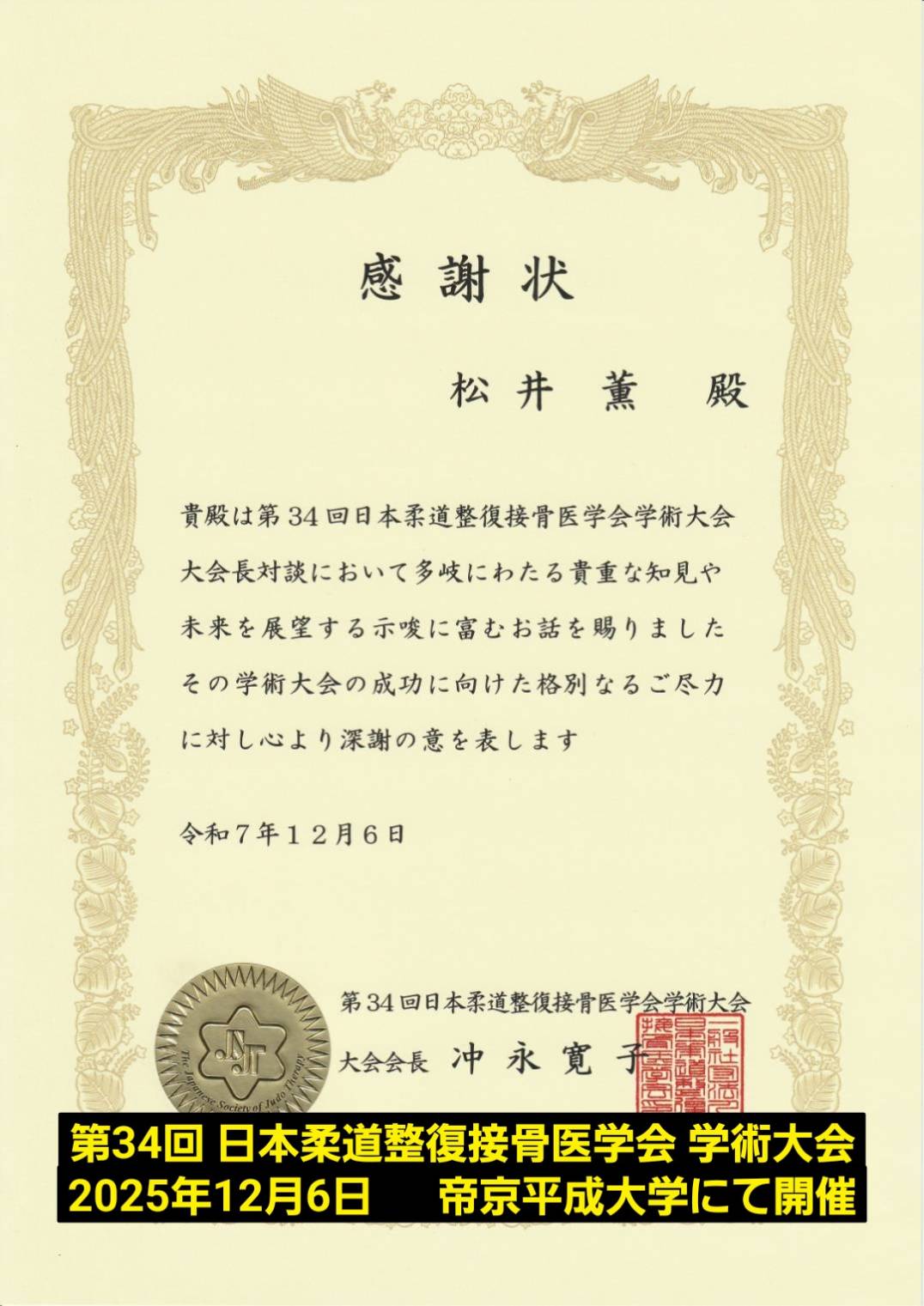 【感謝】 柔道整復師 の 学会 で 表彰されました